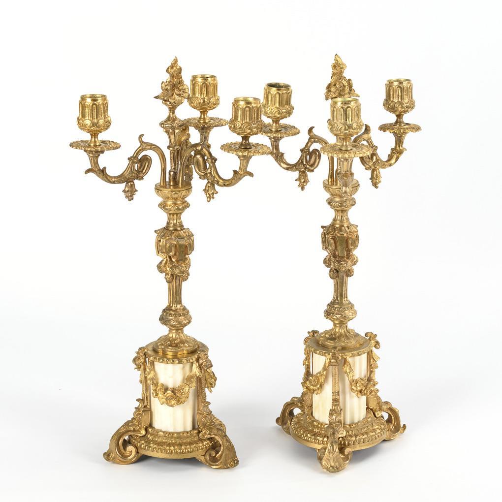 Richly garlanded, appliquéd and decorated in relief candelabra with 3 arms and central raised floral finial. Gilding partly rubbed.