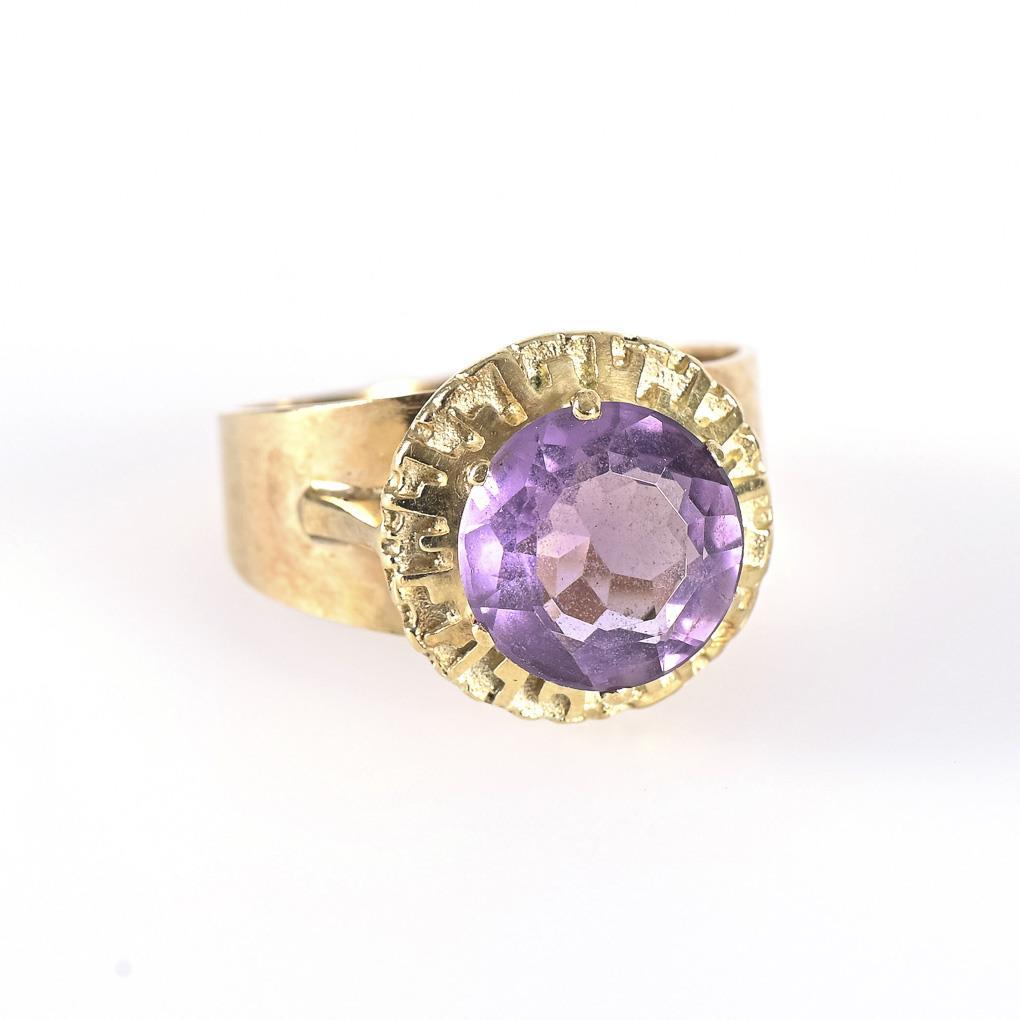 Yellow gold 585 stamped. Ring size 62. 8.3 g.