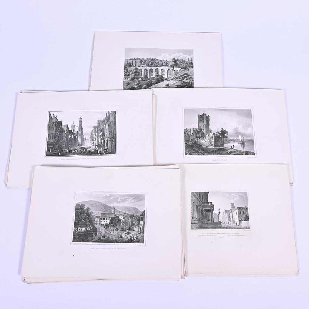 Portfolio with 100 steel engravings, title page and table of contents. Color embossed portfolio.