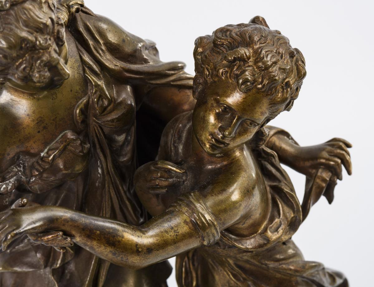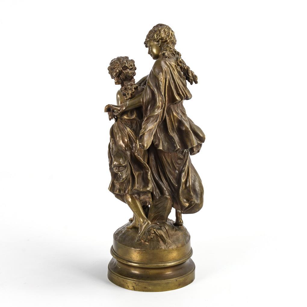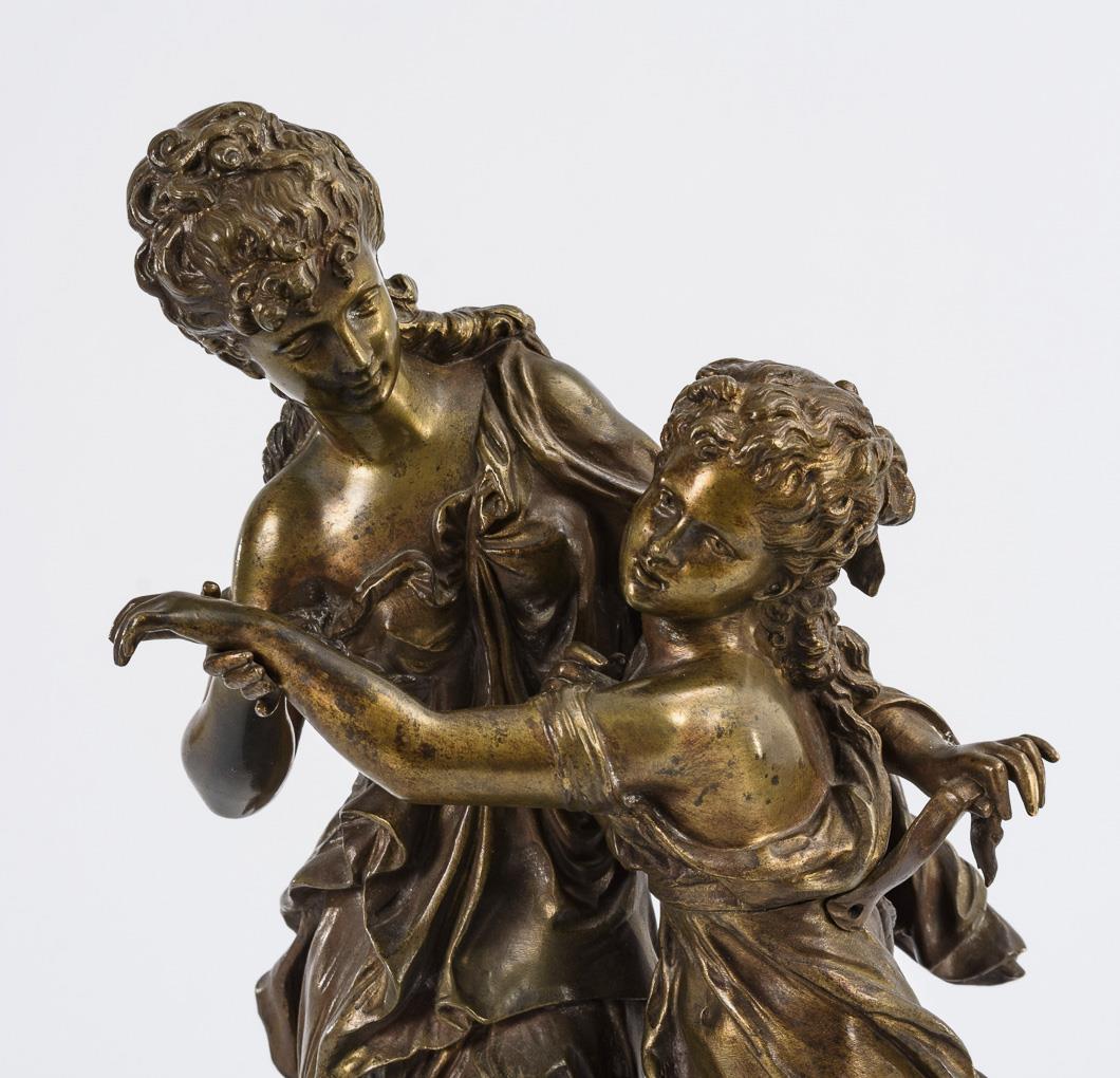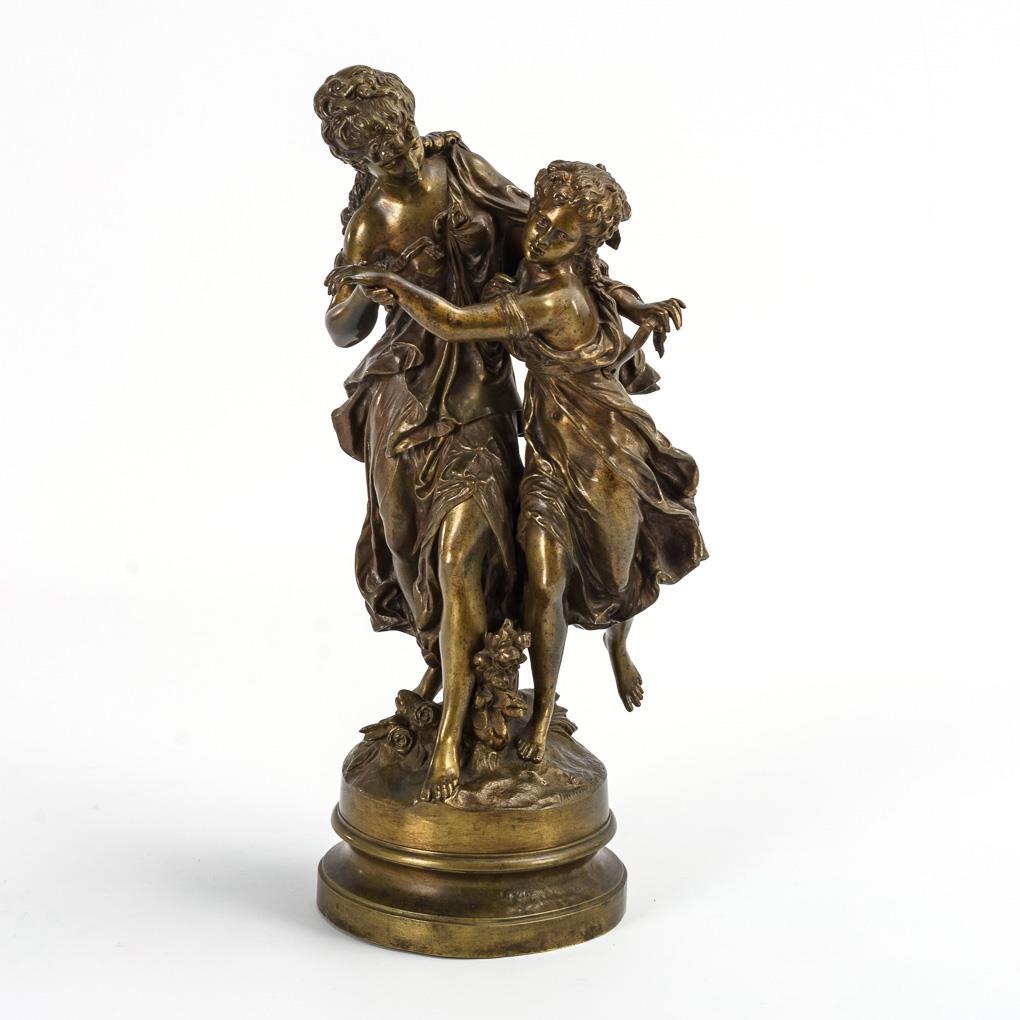 Running young girls, dancing as it were, in an exuberant way. Patina heavily rubbed and partly stained, dents on the base.