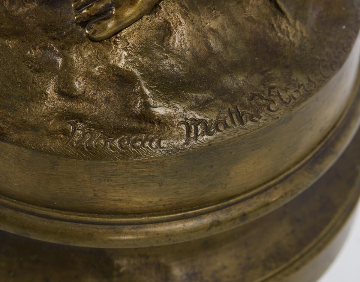 Bronze patinated, original bronze base. Inscribed with addition "Hors concours". H 37 / 42 cm.