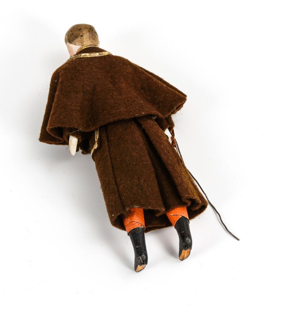Wohl Kaiser Wilhelm II.? Brustkopf mit modelliertem Schnurrbart und gemalten blauen Augen. Preussischer Uniformmantel aus braunem Filz mit Cape, Reste eines Degens.