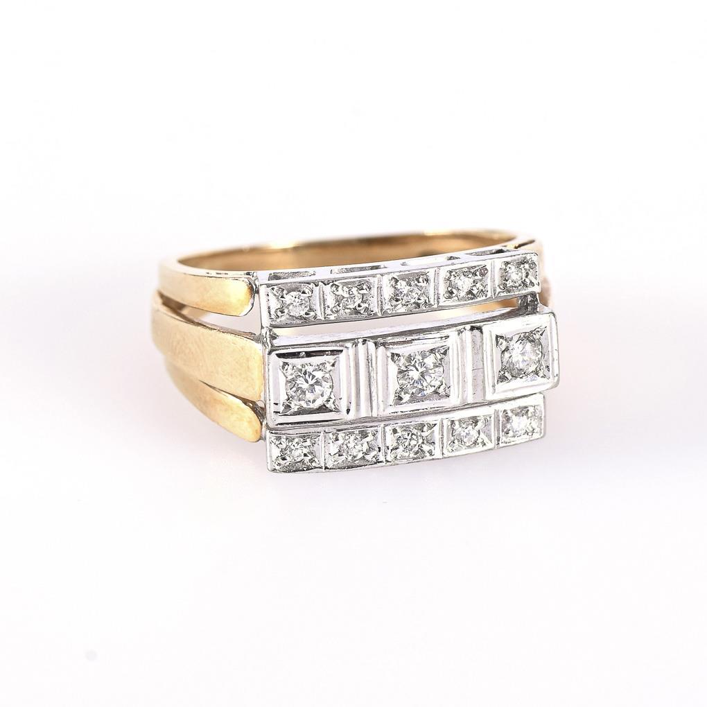 Yellow gold / white gold 585 stamped. Ring size 59. diamonds total approx. 0.30 ct. 6.0 g.