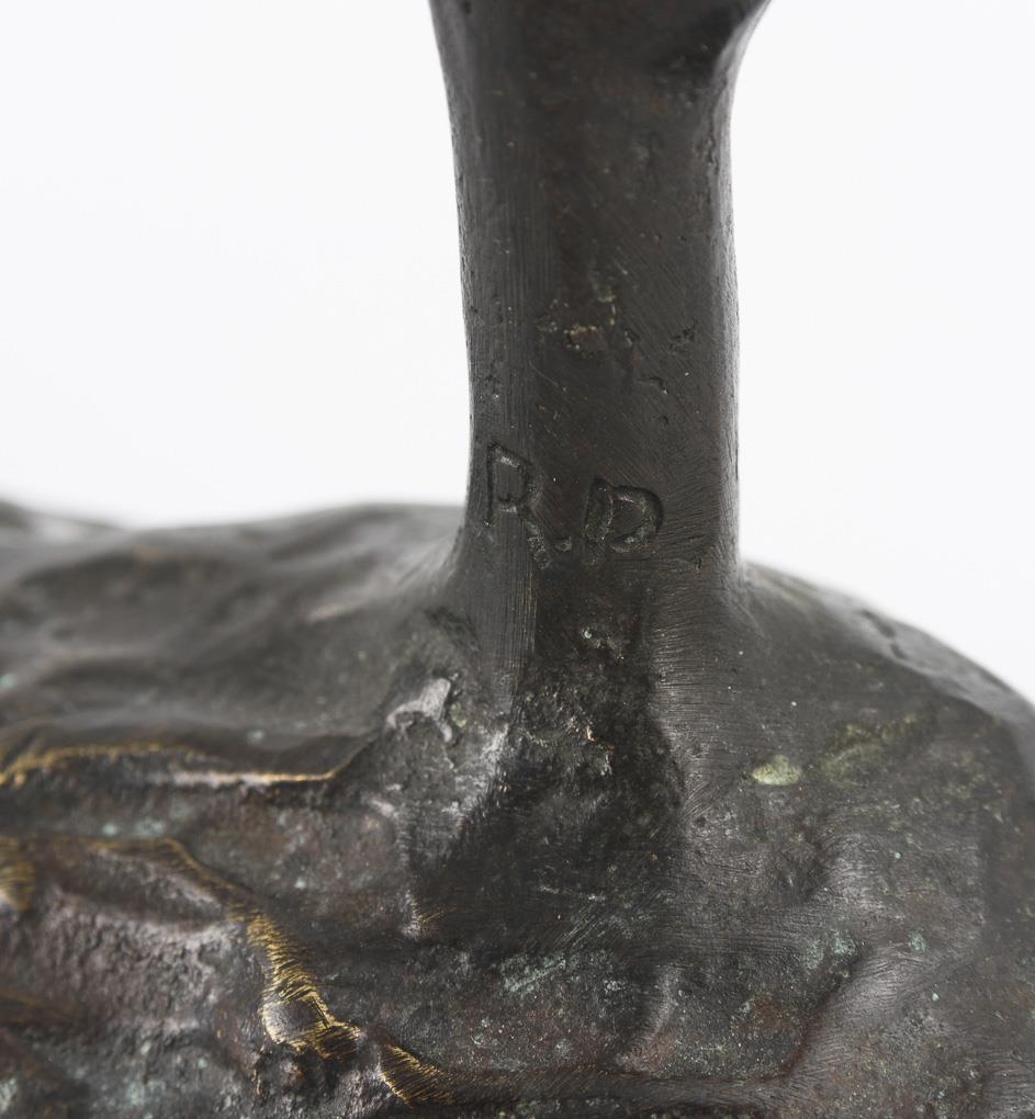 Bronze patinated, base filled with sand and glued. Inscribed with monogram "RP". H 21,5 cm.