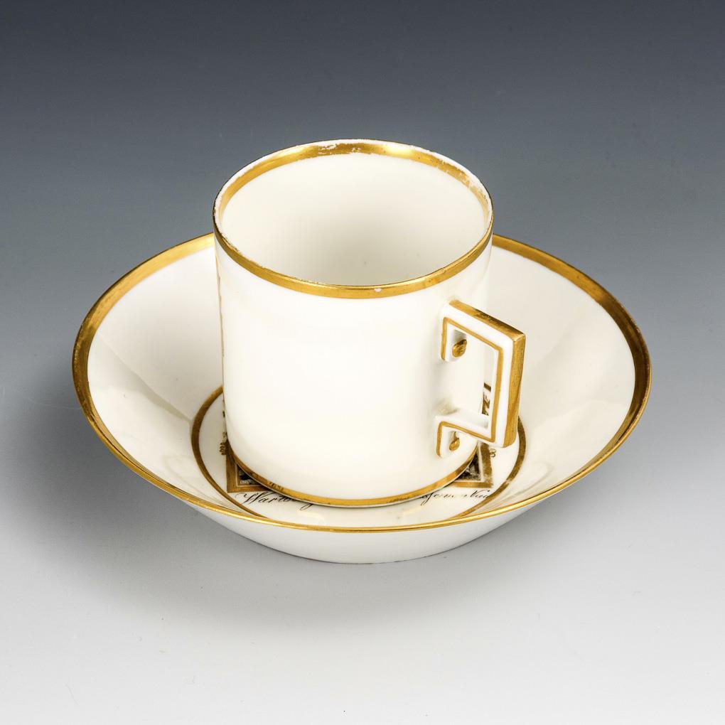 Painting in black, gold staffage. H cup 6,5 cm, Ø original saucer 13,5 cm.