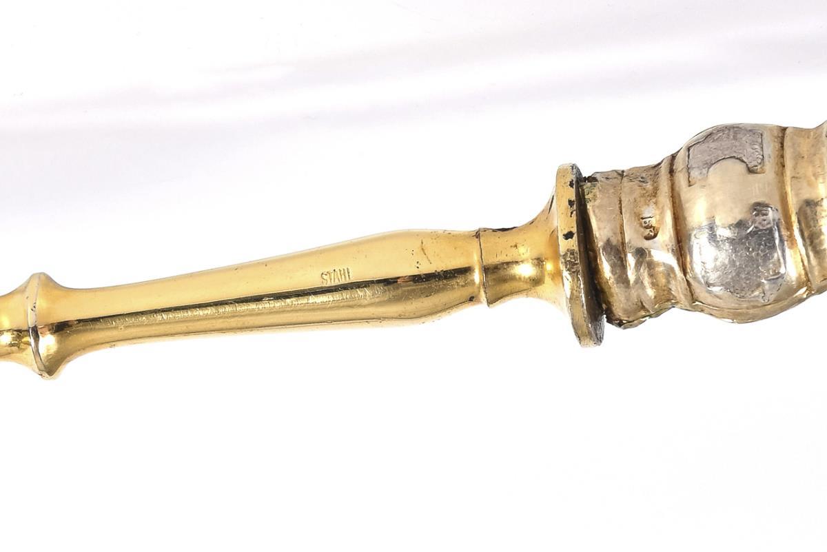 Silver, partially gilded and steel gilt. L 19/27,5 cm. Weighted.