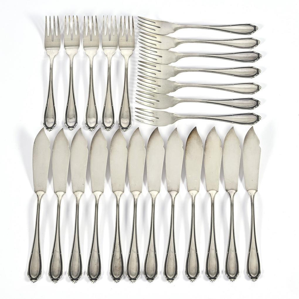 24-piece silver fish cutlery. Bremer Silberwarenfabrik.