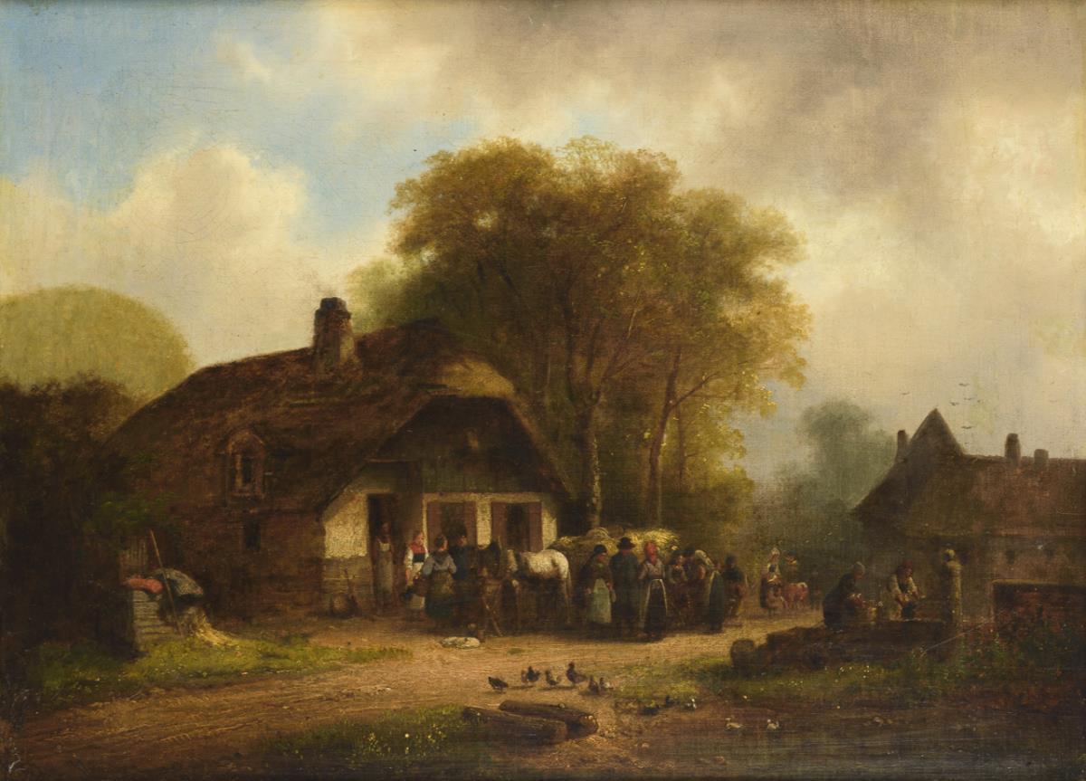 Village scene with hay cart