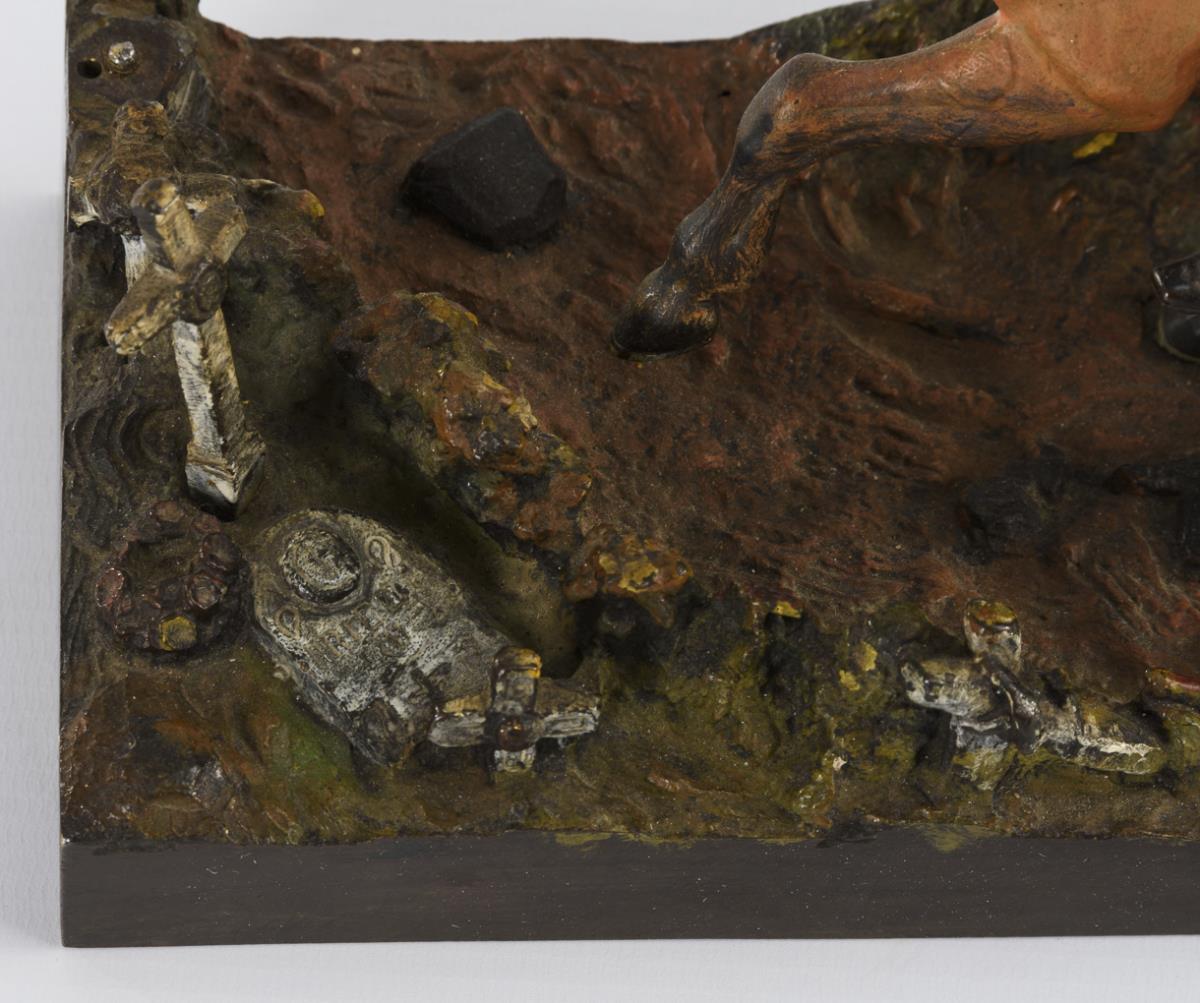 Bronze polychrome painted. 20.5 x 23.5 x 10 cm.