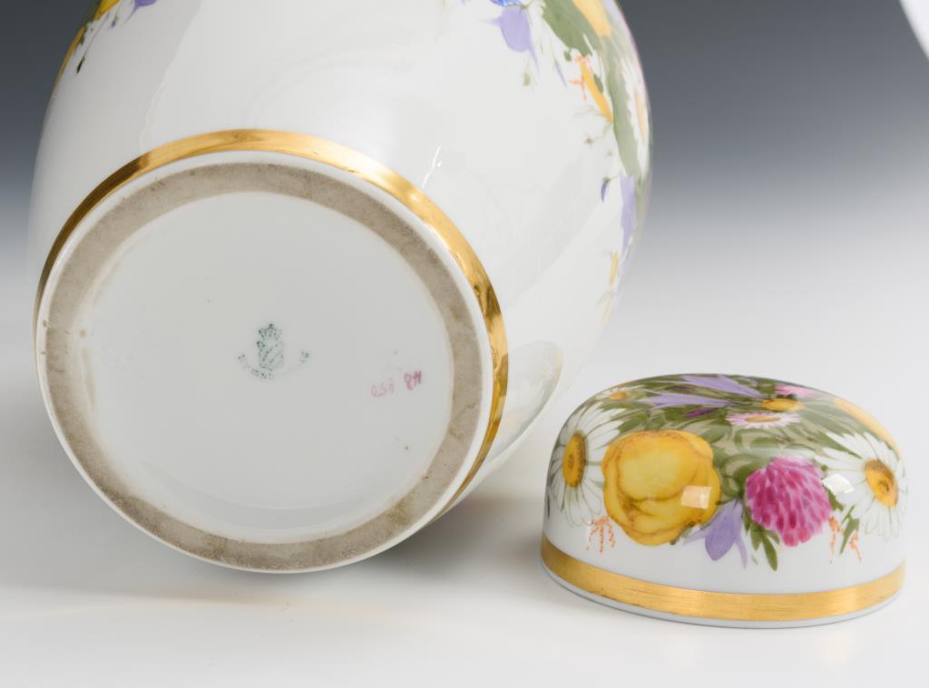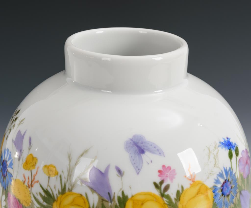 Balustervase mit Deckel. Umlaufend ein Wildblumenband.