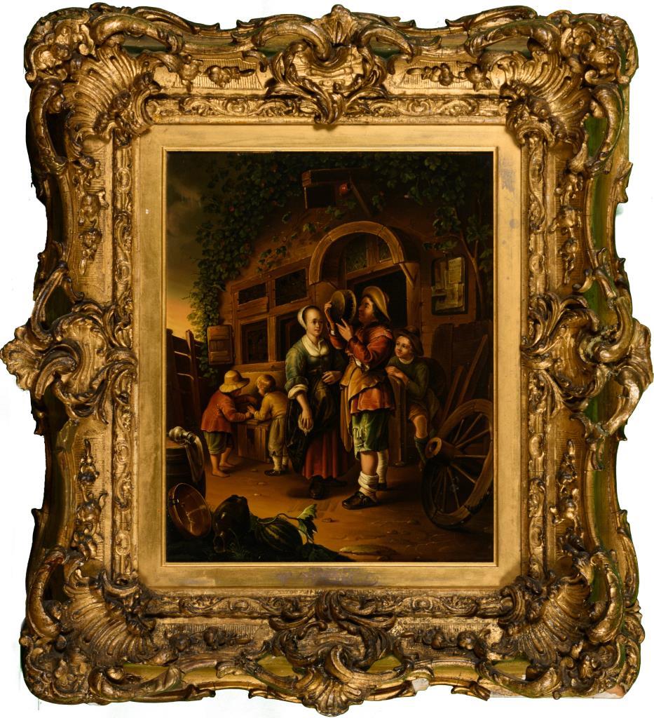 Öl/Eisenblech.Unsigniert, verso französisch als "Le maitre drouineur" bezeichnet.1. H. 19. Jh.