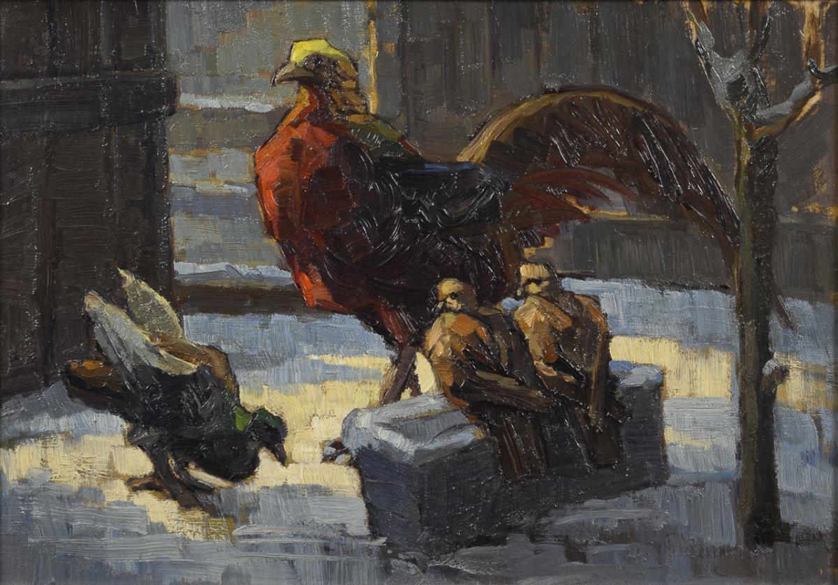 "Gold Pheasant and Doves"