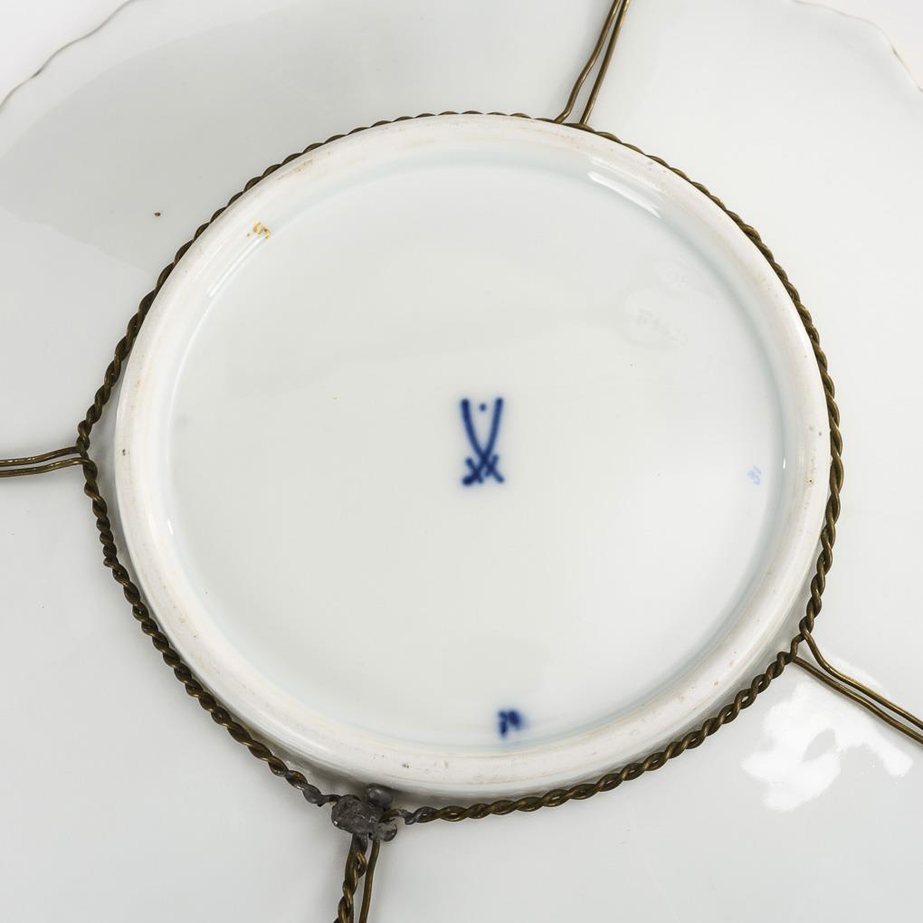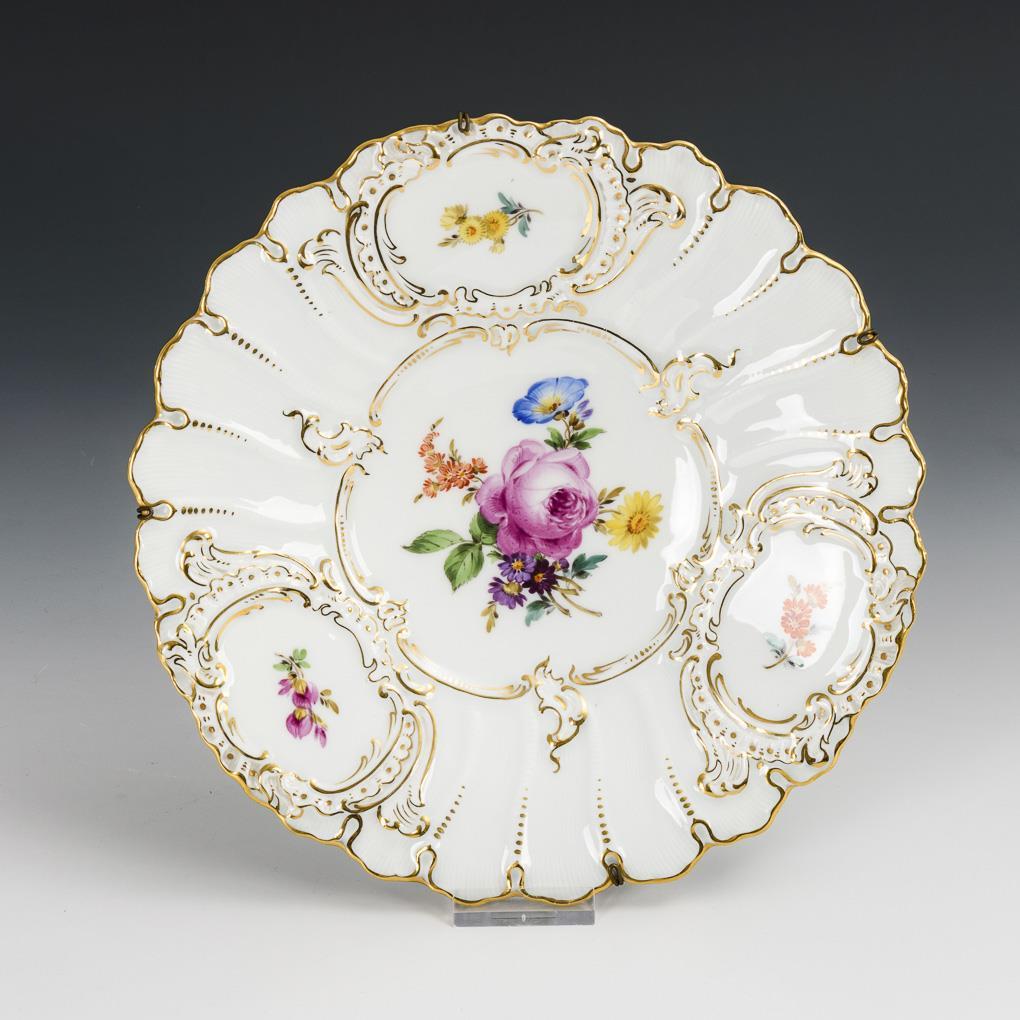 Polychrome painted, gold decorated. Ø 23,5 cm.