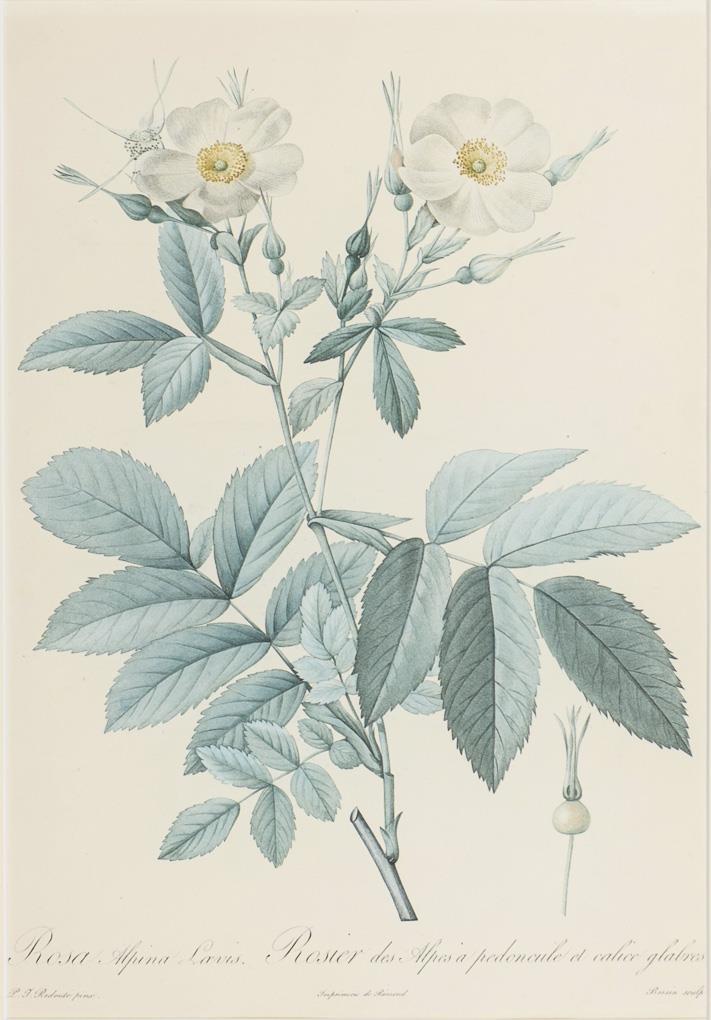 Botanical illustration of a mountain rose; from "Les Roses", 1817 - 1824.