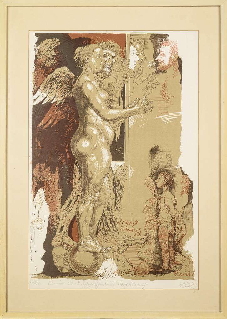 German painter and graphic artist, counts among the most important and controversial artists of the GDR. "You do not have to love this custom, neither the man, nor the artist. [...] and Sitte is interesting for two reasons: because of his exemplary career in the vanished German state, with everything that went with it, especially the unedifying; and because of his overflowing productivity, the result of which still awaits sifting. There are probably few other artists where the completely unsuccessful stands so blatantly next to the most surprising and gratifying finds. [...]" (Burkard Müller on WS, www.sueddeutsche.de).