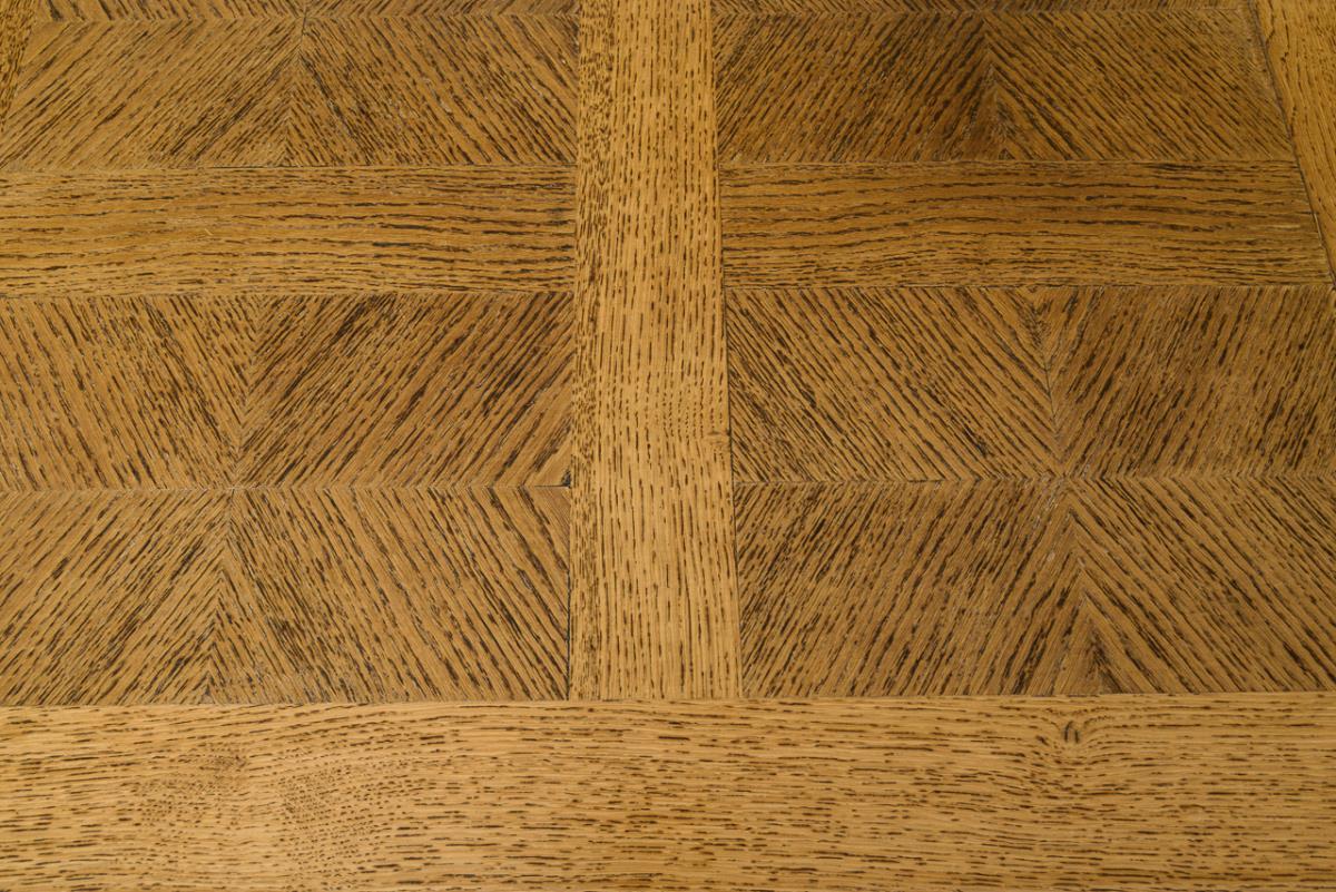 Solid oak and stained. Approx. 74.5 x 119 x 90 cm (both sides folded out L approx. 213 cm).