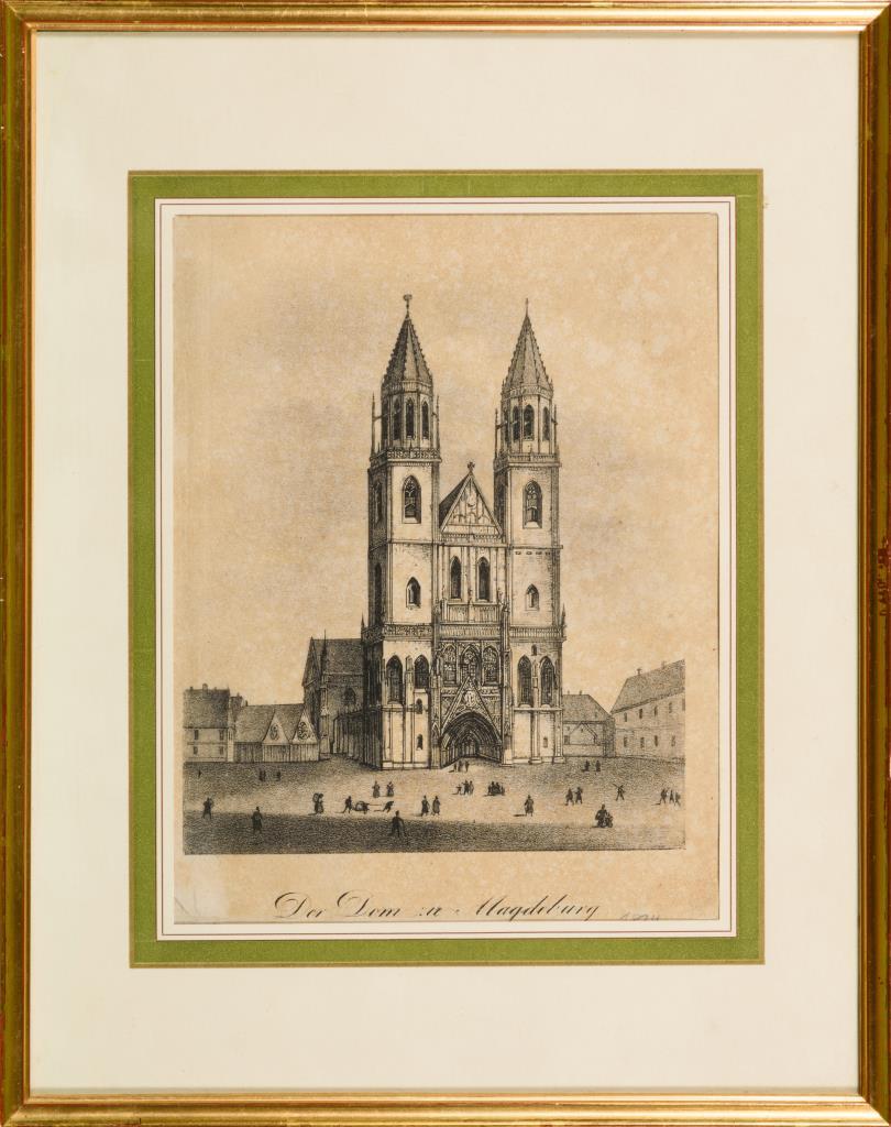 "Der Breite Weg in Magdeburg" und "Der Dom zu Magdeburg". Etwas stockfleckig.