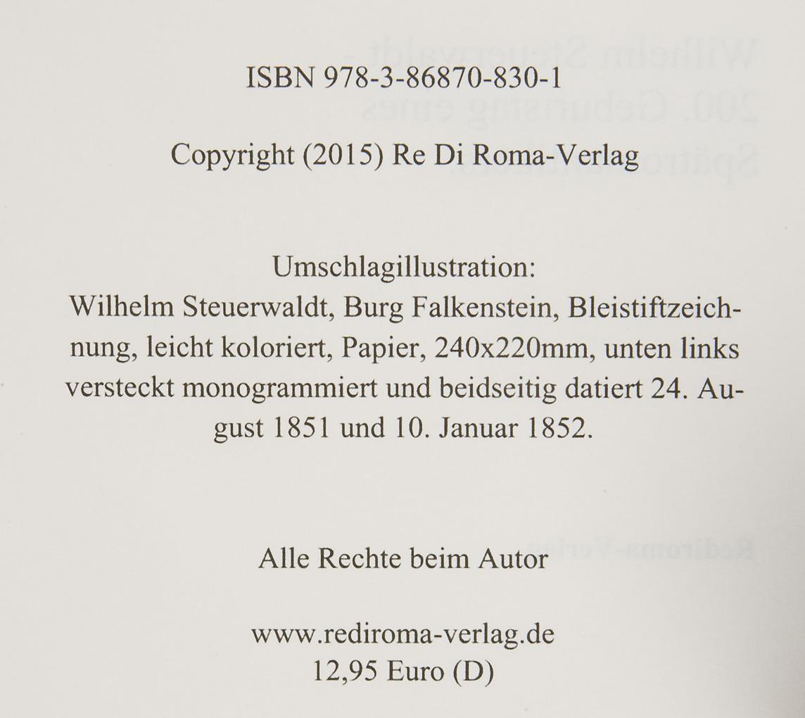 Steuerwaldt, landscape and architectural painter, graphic artist. Son and student of Wilhelm the Elder, since 1830 student of Carl Hasenpflug, 1833-1836 student of Johann Wilhelm Schirmer at the Academy in Düsseldorf. Works in numerous German museums * Partner auction Bergmann.