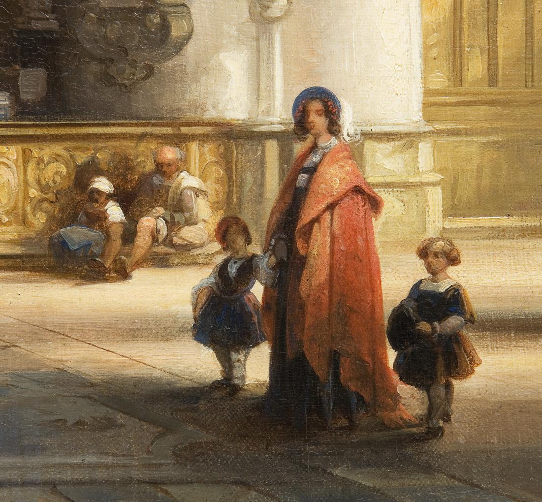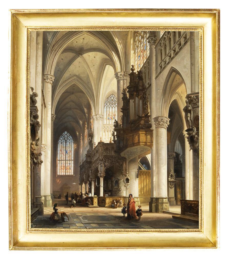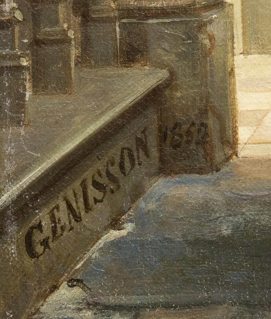 Génisson, architectural and historical painter, studied at the Academy in Antwerp. Pupil of the brothers de Bree. Traveled France, England, Germany and Italy in 1829-1834. Resident in Bruges since 1857, exhibited in Brussels, Paris, London and Berlin, painted almost exclusively church interiors * Partner auction Bergmann.