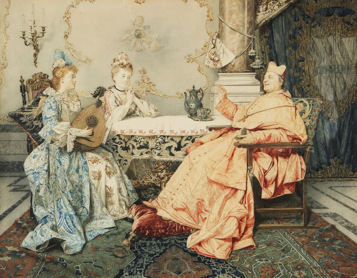 Two young ladies in the salon of the Cardinal