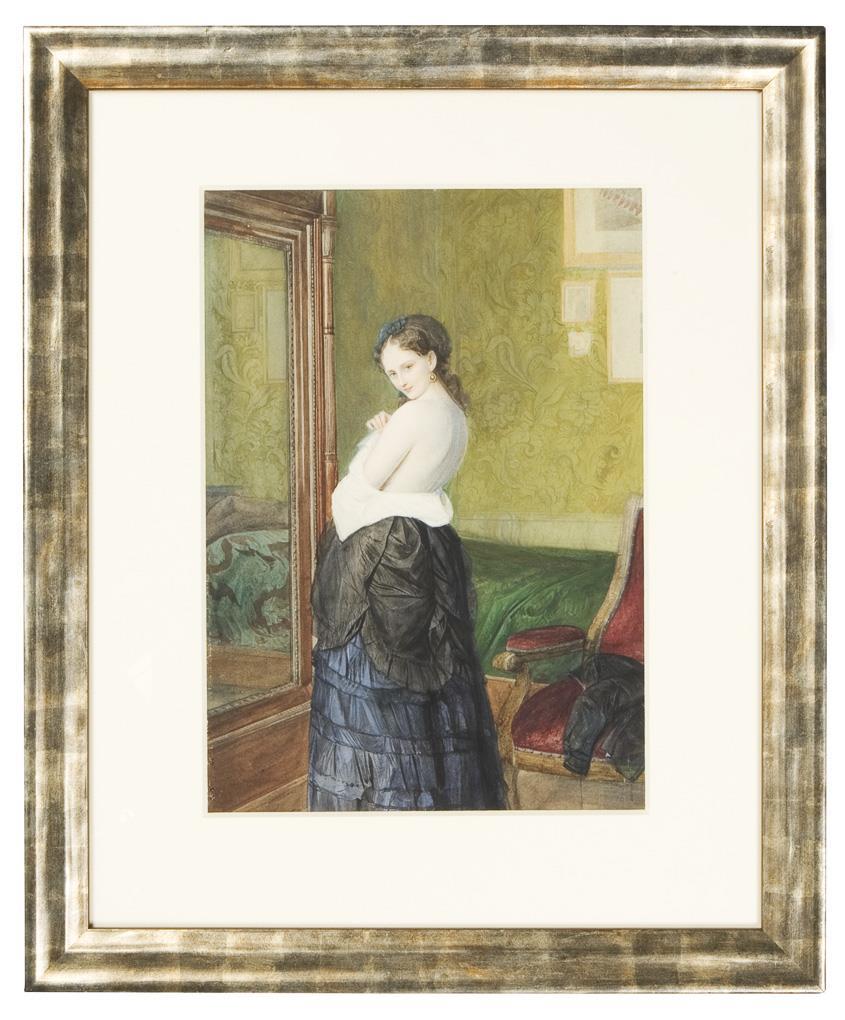 Very finely and richly detailed painted, insinuating portrait with beguiling charms. Passepartout, glazed frame as new.