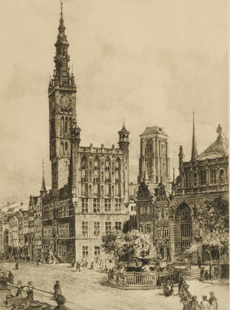 2 Ansichten der Stadt Danzig: Marienkirche und Rathaus