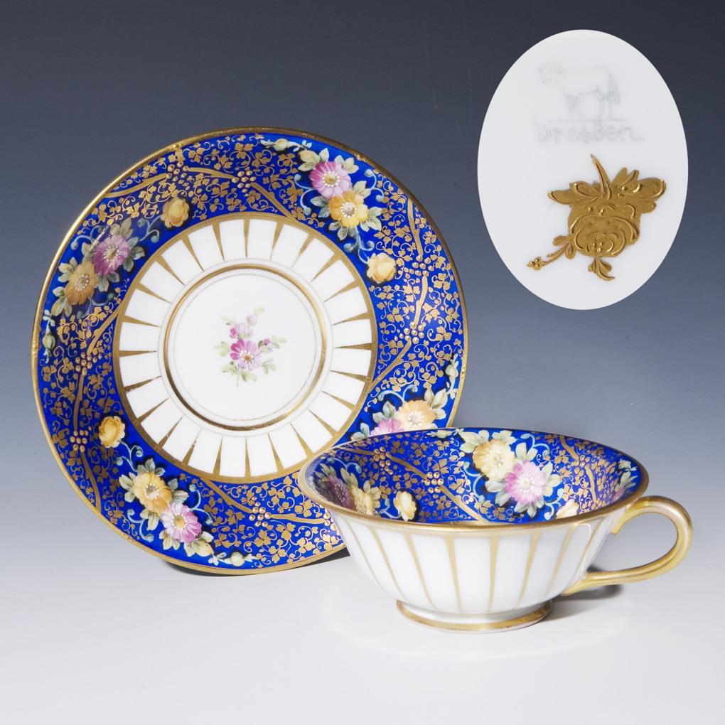 Royal blue background, colored floral painting, floral gold painting, relief gold, gold staffage. Lamb bottom mark, painted over manufacture mark of Selb-Plößberg.