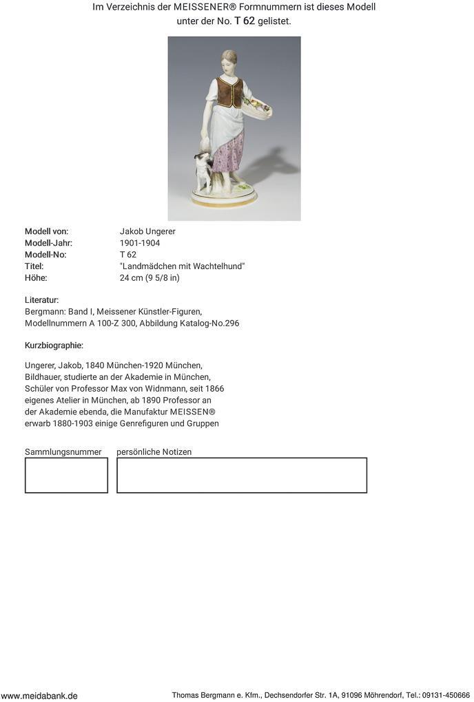 Ungerer, sculptor, since 1866 own studio in Munich. 1890 Professor. The manufactory acquired some figures * partner auction Bergmann.