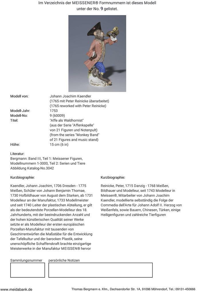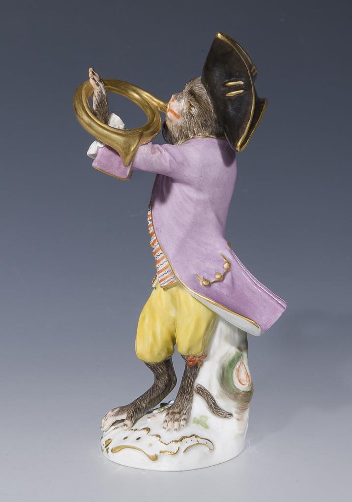 Figure of the monkey chapel: monkey as a French horn player. Meissen.