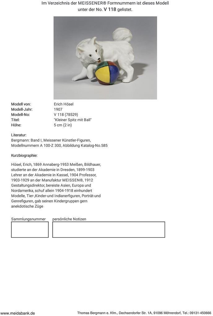 Little Spitz with ball. Meissen.