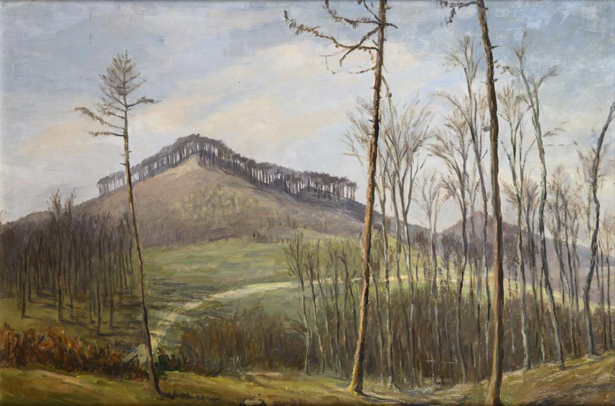 Oil/painted cardboard. Signed lower right, titled on verso. (19)50.