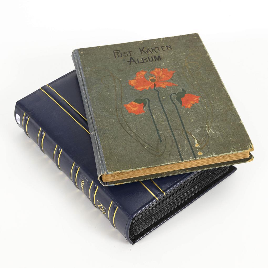 Approx. 300 postcards only Jena. Gray "Post-Cards Album" with poppies, 27 x 21 cm and modern dark blue album, 29 x 21 cm.