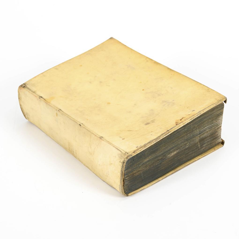 (6), 1024, (99 index)pages. In two columns in German. Parchment binding, blue cut. Binding loose but completely preserved, block tight.