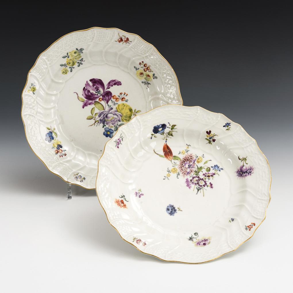 2 baroque plates with floral painting. Meissen.