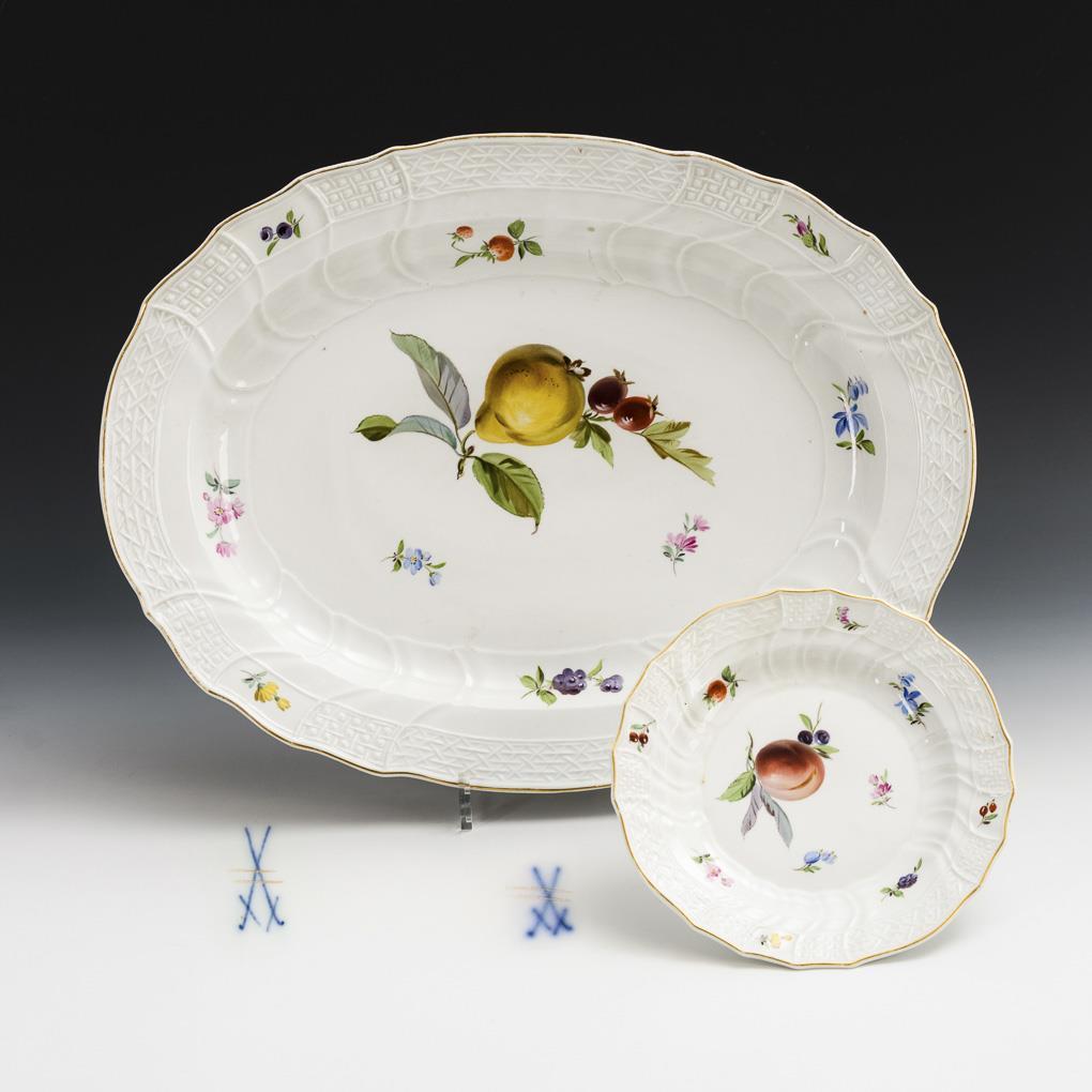Plate and plate with fruit painting. Meissen.