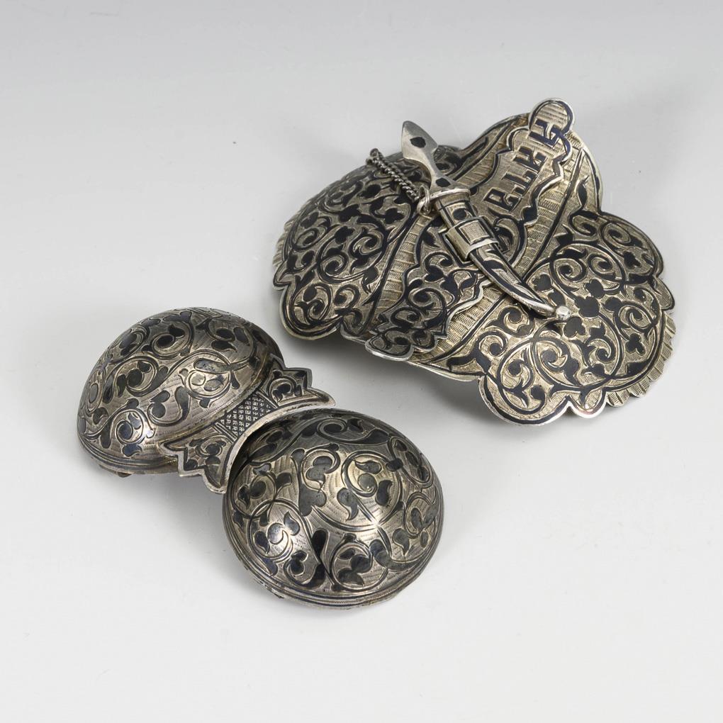 Silver buckles decorated in niello technique.