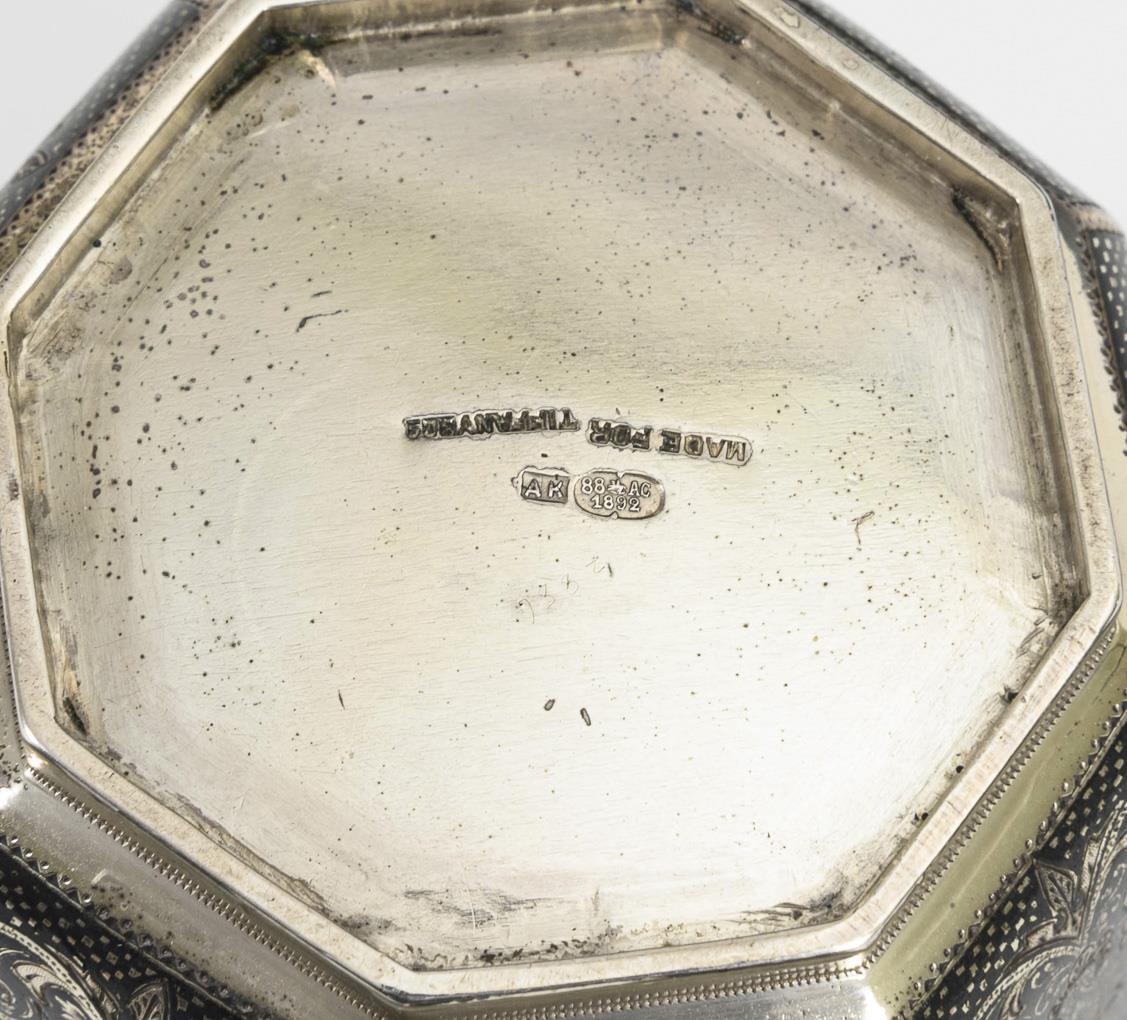 Full hallmark/88 Zolotniki, with addition "Made for Tiffany & Co" and import stamp Swan. 1892. moscow.