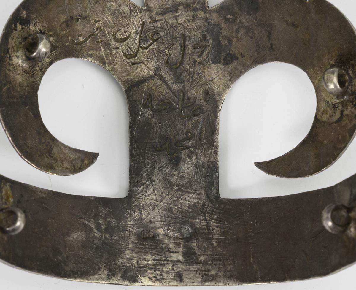 Jewelry elements decorated in niello technique. 1x with reverse engraving in Arabic script. Slight signs of age.