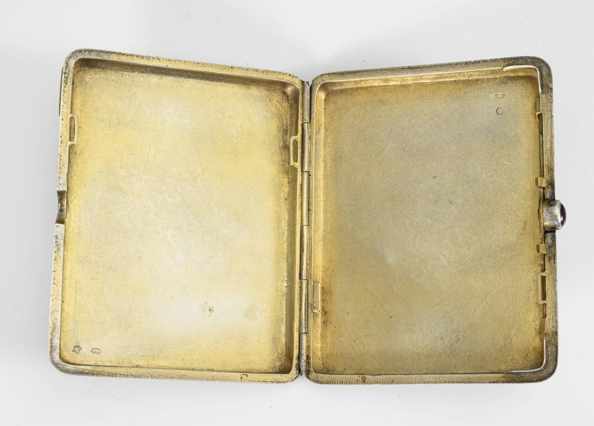 In niello technique richly decorated case with red oval cabochon on the clasp. Slight signs of wear.