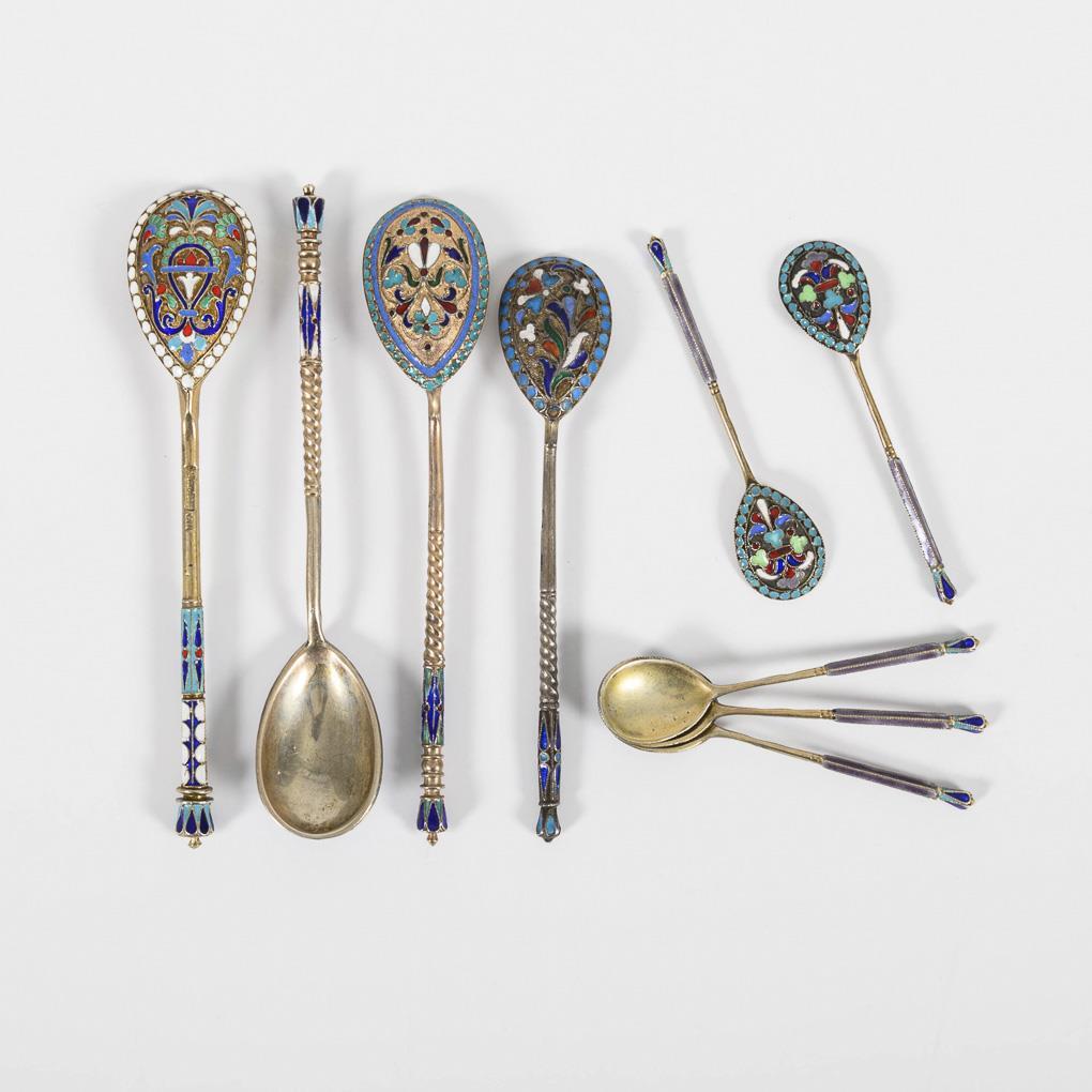 9 Russian cloisonné spoons.