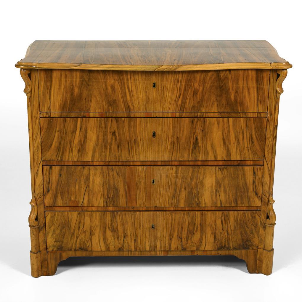 4-bay chest of drawers in style-typical curved form. Traces of age/use.