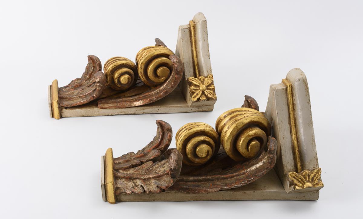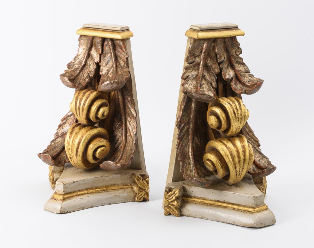 Pair of carved wall consoles.