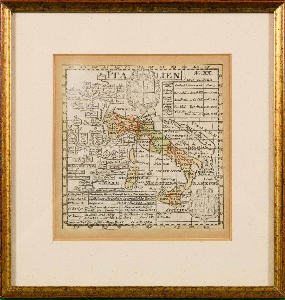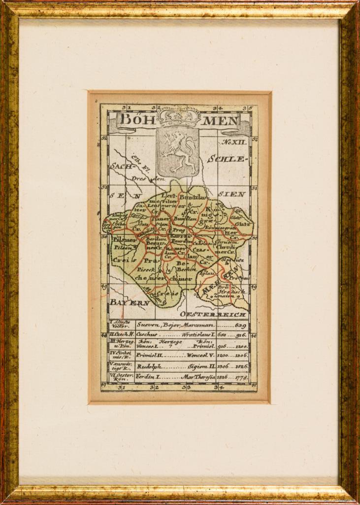 9 kleinformatige Landkarten: "Rusland", "Norwegen und Schweden", "Africa", "Italien", "Ungarn", "Daennemarck", "Türkische Reich in Europa und Asia", "Pohlen" und "Böhmen", aus: Atlas Minor.