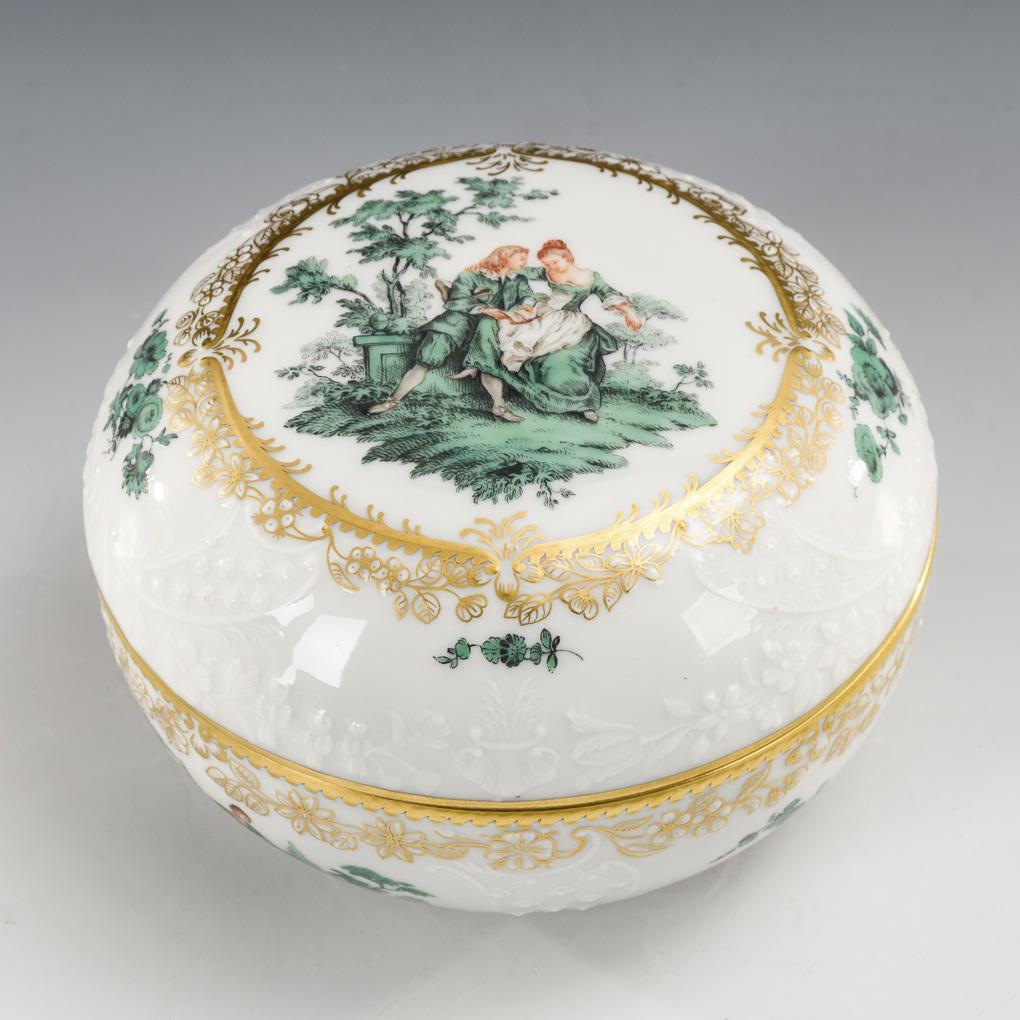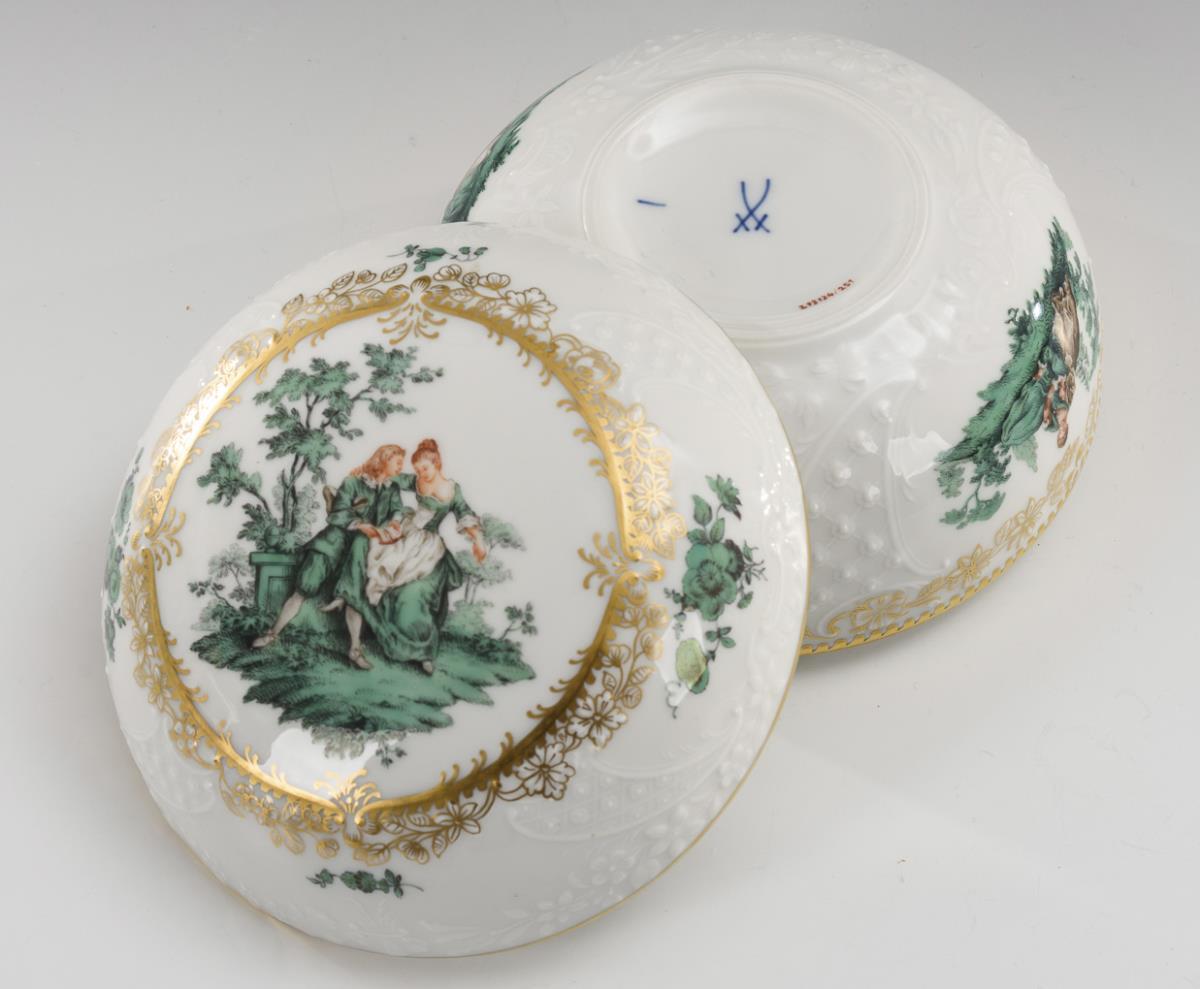Can with Watteau painting. Meissen.