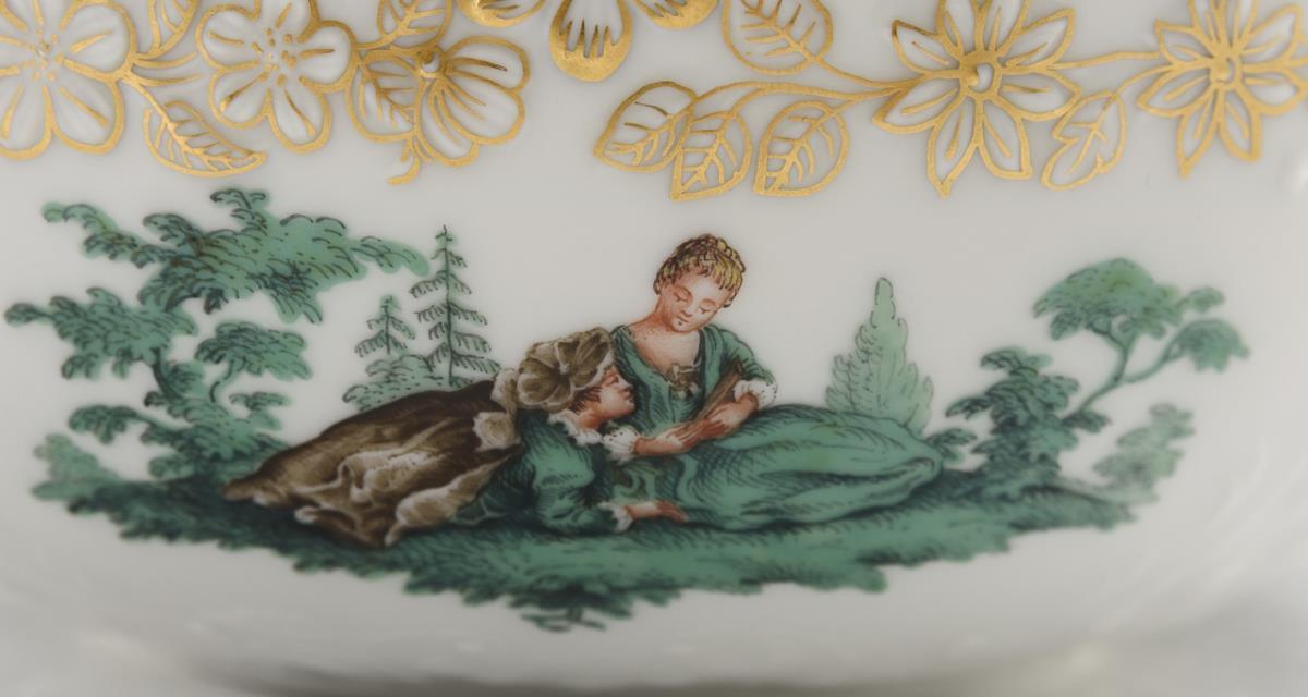Form "Marseille". With copper green painted gallant scenes.