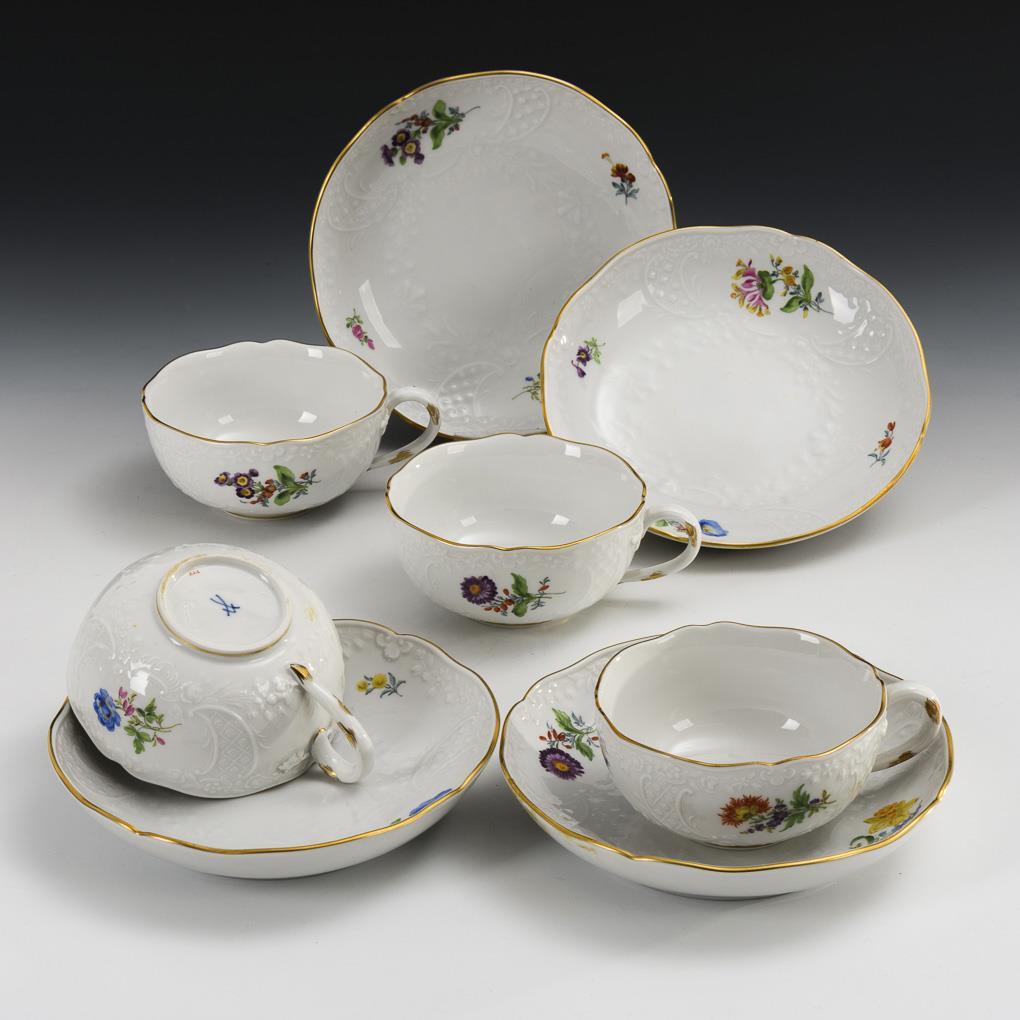 4 tea cups with floral painting. Meissen.