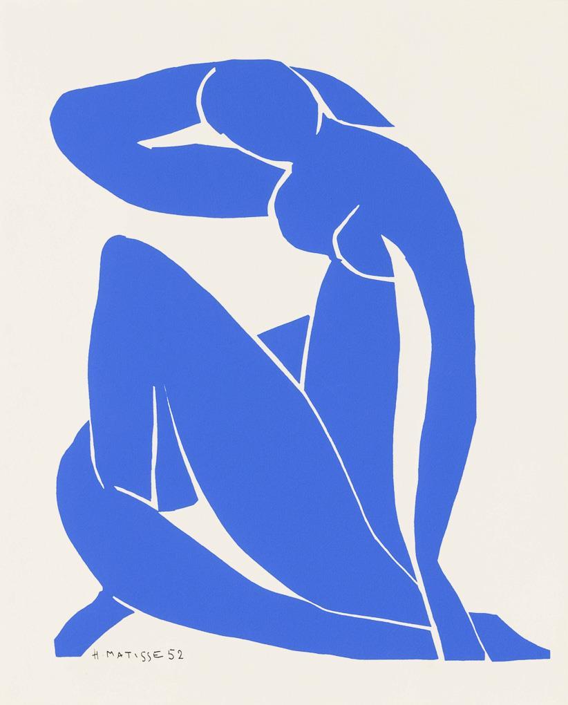 From a series of about 12 abstract female nudes, originally cut from blue colored paper and belonging to the last works of the artist. He called this technique "drawing with scissors".