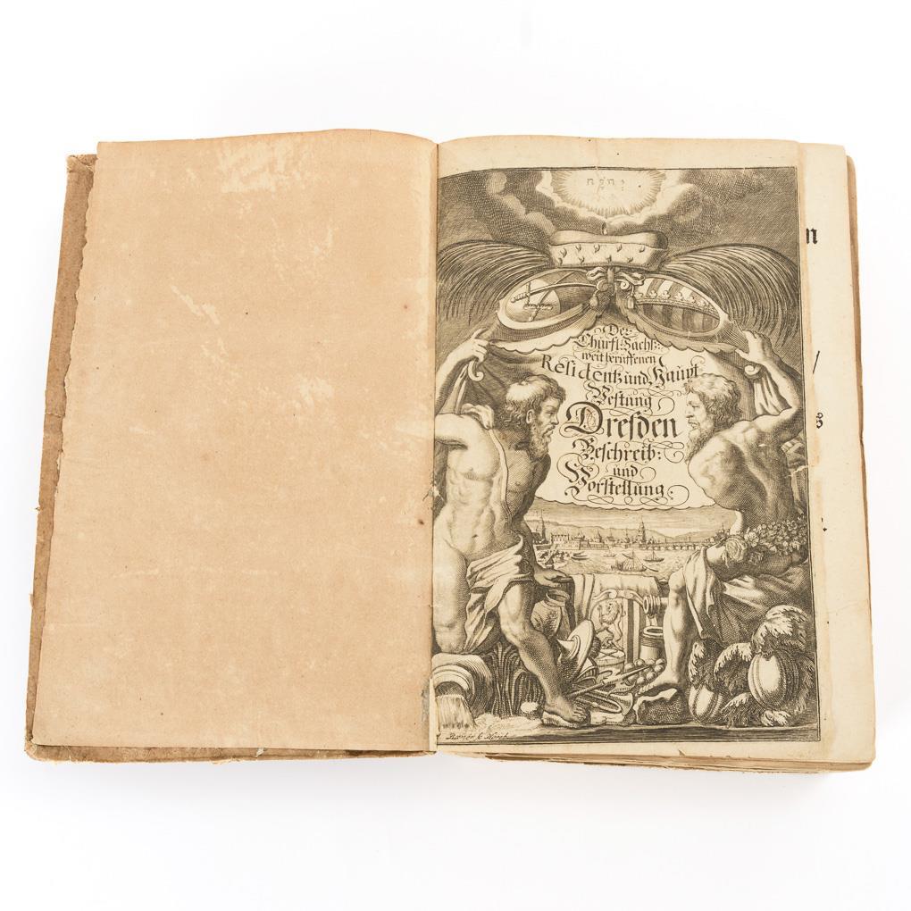 Including fortification plan of Dresden, and early views. In simple paperback. spine, cover and some pages loose, little traces of fraying in the binding area. Some boards torn.