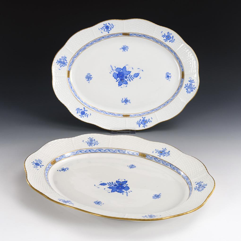 Blue Indian floral painting over preprint, gold staffage. L 37,5 and 41,5 cm.