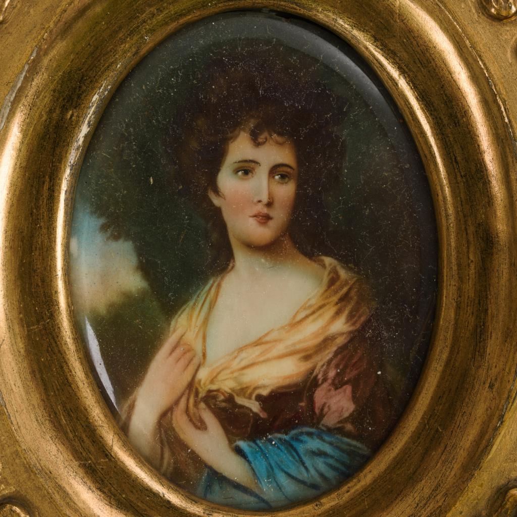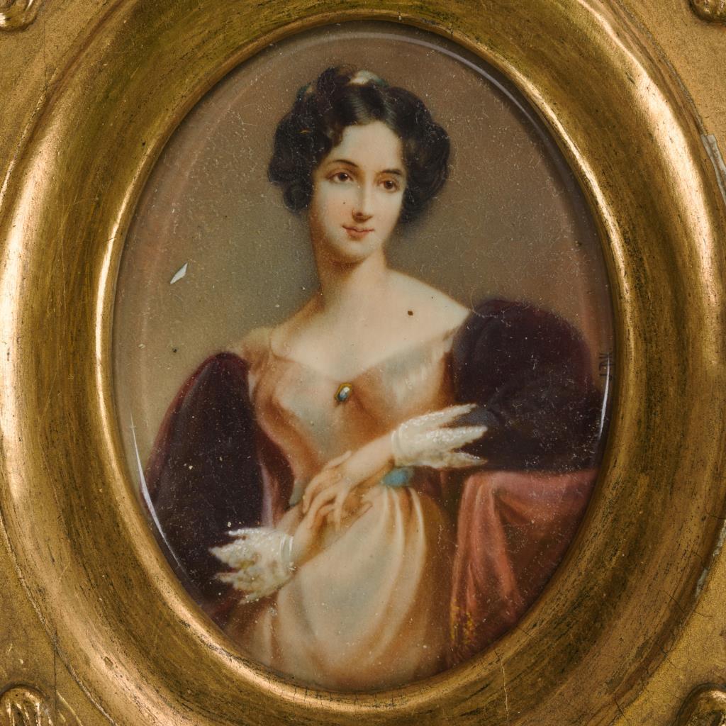 2 Miniaturen: Damenbildnisse in Goldstuckrahmen